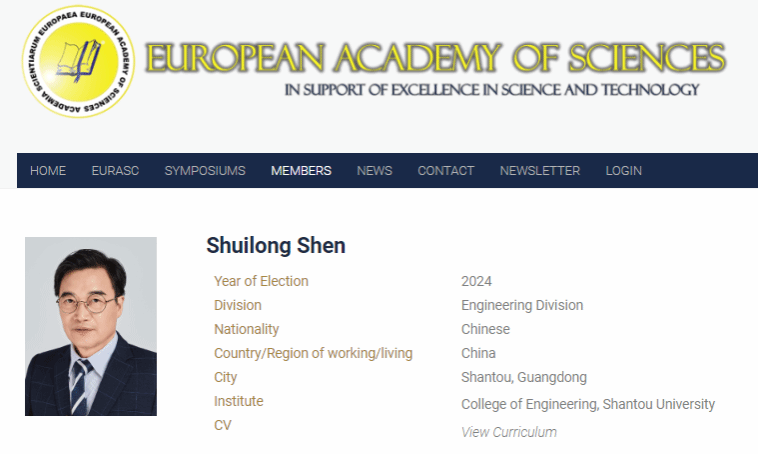 近日,在歐洲科學(xué)院(European Academy of Sciences,簡(jiǎn)稱EurASc)理事會(huì)選舉中,汕頭大學(xué)工學(xué)院院長(zhǎng)沈水龍教授正式當(dāng)選為其工程學(xué)部外籍院士(Non-EU Fellow)。